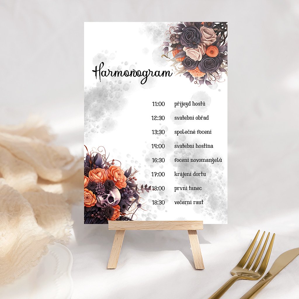Originální harmonogram svatebního dne navržený ve stejném designu jako samotné svatební oznámení s veškerými informacemi o průběhu Vašeho svatebního dne.