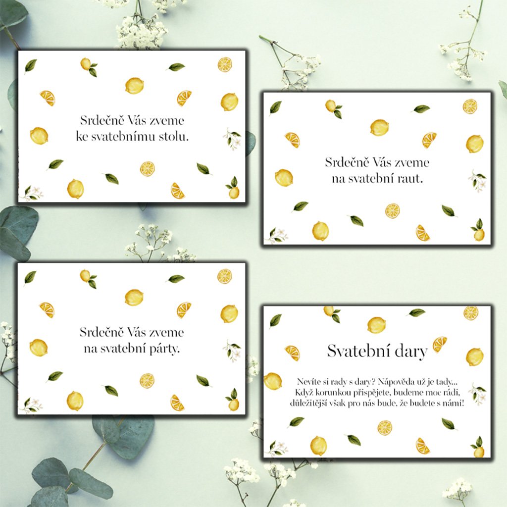Chcete-li svým hostům jednoduše oznámit zda mají dorazit pouze na večerní párty nebo s Vámi usednout už ke svatebnímu stolu, pak určitě doporučujeme objednat kartičky ke svatebnímu oznámení, které jsou navržené ve stejném designu jako svatební oznámení samotné. Stejným a zároveň dost často využívaným způsobem je možné dát hostům na vědomí, že upřednostňujete svatební dar vložený do obálky.