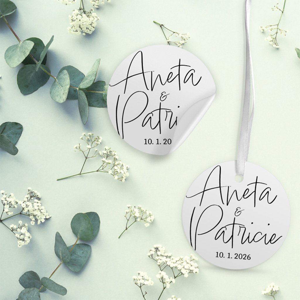 Velmi oblíbené svatební nálepky nebo visačky navržené v designu svatebního oznámení jsou nejčastěji používané jako doplněk k obálkám, ale jistě najdete nespočet využití jako např. na krabičky s výslužkami, dárečky pro hosty a mnoho dalšího.