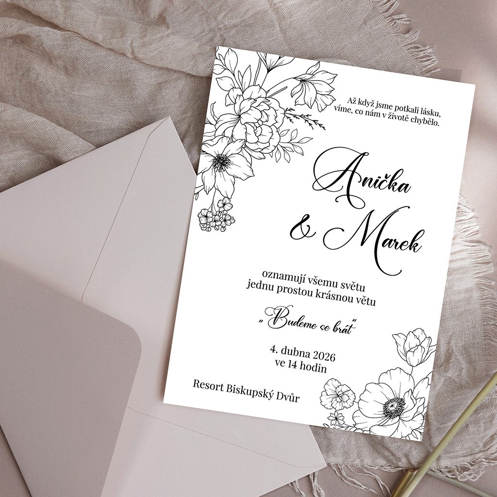 Před dokončením objednávky nezapomeňte v poznámce zanechat Vaše jména, datum, čas a místo svatby. V případě dalších požadavků je možné dohodnout i jiné úpravy textu. Tyto úpravy jsou zahrnuty v ceně oznámení.