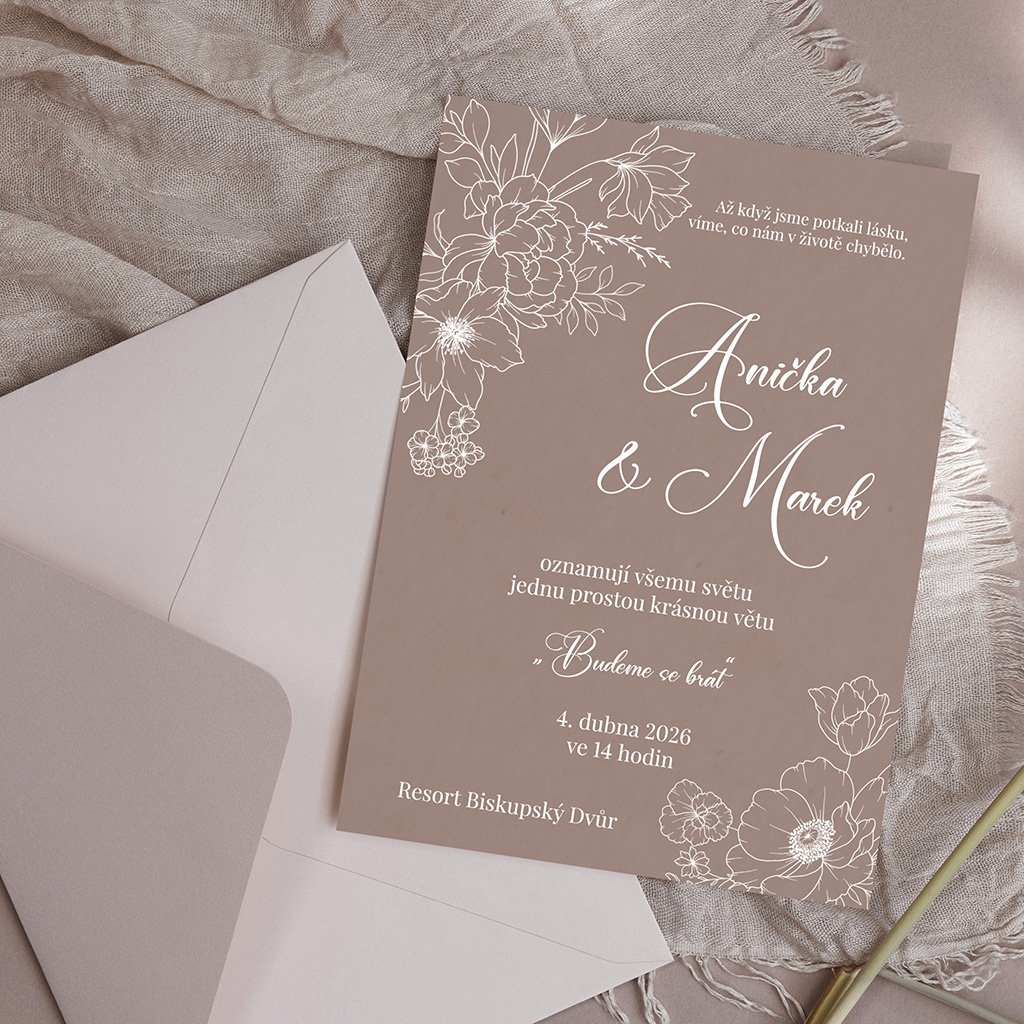 Svatební oznámení formátu A6 (105 x 148 mm) je možné tisknout na bílý hlazený papír gramáže 300 g/m2 nebo na papír strukturovaný o gramáži 250 g/m2.